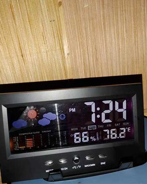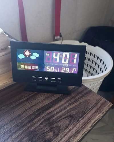 Made of high-quality, non-toxic acrylonitrile butadiene styrene (ABS) plastic material with advanced liquid crystal display (LCD) screen and LED backlight. It supports an exceptional durability that can endure accidental drops and fluctuating temperature exposure for several years without damaging and losing functionality. This digital weather monitoring calendar desk clock does not overheat to ensure that it can be continuously used without the risk of dangerous fire hazards.